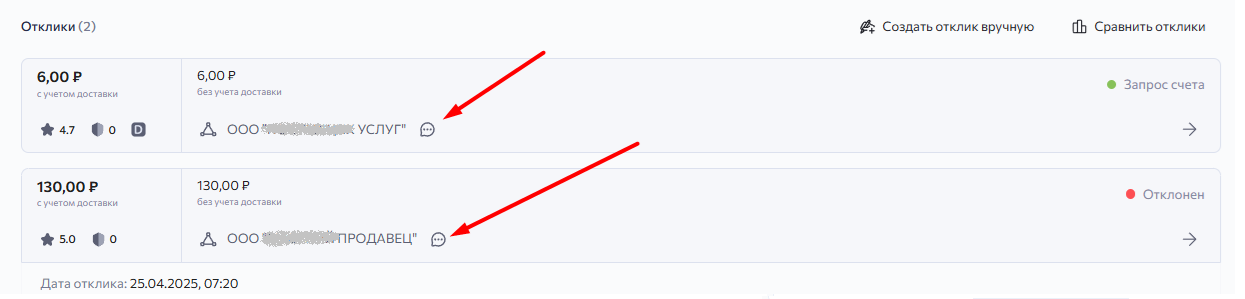 Как связаться с Поставщиком, который прислал отклик