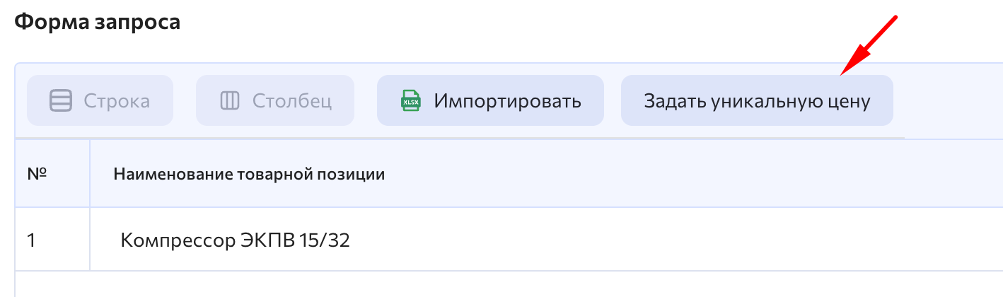 - В подразделе «Форма запроса» нажмите «Задать уникальную цену» для установки индивидуальных цен.